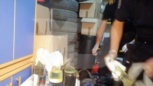 Në pamjet filmike shihen polic të njësive speciale duke thyer dyert e garazheve e po ashtu policët e forenzikës të cilët ekzaminojnë çantat në të cilat janë gjetur dhjetëra shishe të xhamit të mbushura me benzinë dhe material djegëse.