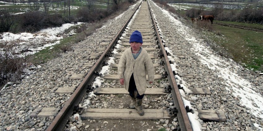 Një djalë shqiptar i Kosovës duke ecur në shinat e trenit 20 mars 1999, i lodhur dhe duke ngelur pas familjes së tij teksa ata largohen nga fshatrat e tyre pranë qytetit Gllogoc. Foto: Wade Goodard.Libri i ri i Wade Goddard nga Zelanda e Re kap vuajtjet e konfliktit në Kosovë, por fotografi veteran i Ballkanit u përpoq gjithashtu të gjente kurajë dhe shpresë mes gjakderdhjes.