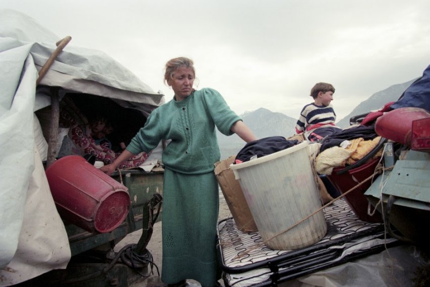 Në një nga fotografitë, një shqiptar i quajtur Imer Deliu nga fshati Abri në Drenas në Kosovën qendrore ka hedhur trupin e djalit të tij katër vjeçar të vrarë mbi një dërrasë, ndërsa rri aty i ngrirë si gur. Edhe gruaja e tij ishte vrarë. 16 anëtarë të kësaj familjeje u vranë në total në shtator të vitit 1998.
